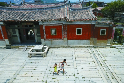 福建省南安市官桥镇漳里村, 现存23座近400间红墙碧瓦的古建筑群格外引人注目。从远处看,它如同一把琵琶,据传说,这座建筑群是九天仙女掉落琵琶之处,在琵琶穴建造房子,建造房屋时不停地敲击石头,财源便会源源不断。后来,人们根据传说,将这座古建筑群称为“琵琶”形村落。