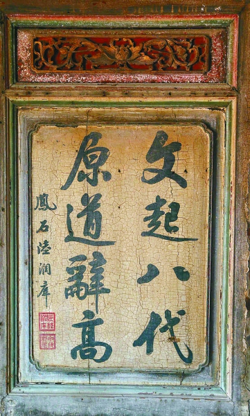 置身其中,你会发现,建筑群的设计者对于细节的刻画相当卓越,梁枋、垂花、窗扇、木隔栅等均雕刻有几何图案、花鸟器物、人物故事等。这些雕刻画的图案背后其实大有文章:或是来自民间故事,或是来自神话传说,仿汉代石雕的“送别书生”,是民间贤妻送夫进京赶考的故事;青石雕“八仙过海”是耳熟能详的神话故事,细细品读昔日贤文中的真谛,蔡氏古民居兴建者的良苦用心一一浮现,对子孙后代的谆谆教诲,可谓字中有意,意中有心,雕刻刀法老练、刻画传神,形成独特的欣赏格调,为建筑注入了丰富的文化内涵,令人啧啧称奇。