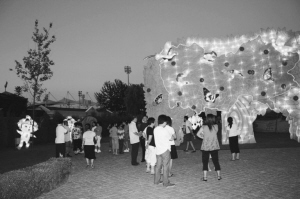 7月29日晚,延庆县东湖公园人头攒动,热闹非凡,延庆县奥运主题灯展正式对外开展,当天距离北京奥运会开幕还有10天。灯展共展出“梦源雅典”“梦圆北京”“五彩乐章”“奥运福娃”“奥运吉祥物”等14组50余个主题彩灯。流光溢彩的奥运彩灯把东湖公园装扮得分外美丽,吸引了广大群众的热情观看。来自颍泽洲小区的马先生带着妻子和2岁的儿子一起来逛灯展,儿子喜欢可爱的福娃彩灯,在“小福娃”的身边转来转去,马先生就用自己的数码相机为儿子留下了灿烂的笑脸。在此后的一个月时间里,每天晚上8点左右,所有彩灯齐亮,游人们尽情享受着奥运主题灯展带来的乐趣。