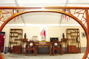 走进100多平方米的江苏小屋,江南古典园林的白墙灰瓦、月亮门,以及各种古典红木家具和令人眼花缭乱的云锦、苏绣、玉器雕刻等工艺品仿佛一下将人们带到了江南水乡的古老园林中,小屋中的很多展品都是精挑细选的,按照保守估算价值也已经超过了500万元。