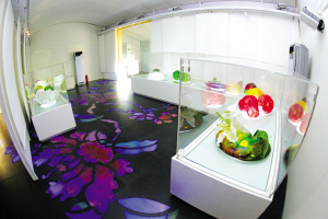 走进台湾的“祥云小屋”,就会看到在高大橱柜中展示的65件流光溢彩的琉璃制品,屋内飘荡着的是恬静柔美的台湾民谣。台湾小屋把世界第一个琉璃工作室搬了进来。