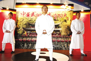 与其他省市小屋繁多的展示内容不同,湖北小屋的内容只有武当山,湖北方面邀请了武当派第十五代传人胡立清现场进行武当拳的表演展示。