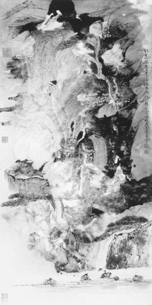 谈到泼彩问题,从张大千到香港的范子登,都带有水墨和泼彩的性质。我认为,在海外画好泼彩的只有侯北人。刚才谈到张大千、刘海粟、何海霞的色彩都有区别,泼彩具有潜意识性,这和西方现代艺术是联系在一起的,在侯北人的作品中更加明显,不像张大千那样受到山和云彩的限制,他现在通过泼彩的语言,通过潜意识重新打碎,现代水墨艺术探讨的成果也引入到侯北人的作品里面。侯北人在形象和水墨之中,在形象和笔墨之中来强调泼彩和用水的特征。