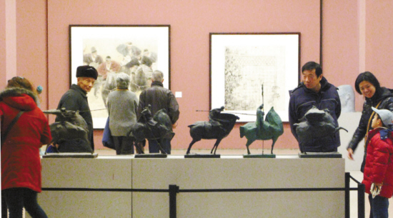 2008全国造型艺术新人展1月5日在中国美术馆开展。参展的百余幅作品从全国美术专业学校师生和职业画家的2600多幅作品中评选出来,包括国画、油画、版画、水彩和漆画等,内容包括表现北京奥运会和汶川地震等主题。 本报记者 喻非卿 摄影报道