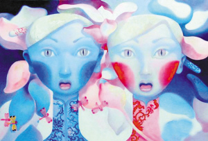 孙学敏没有在作品中直接表现人与自然、环境的对立,他以一种近乎残忍的宁静传达了他的痛苦、他的思考。孟庆欣的笔触则有戏谑和调侃的意味,他让人们感觉到生活中还是充满了乐趣。上图为孟庆欣的作品《青红》。(枚 周)