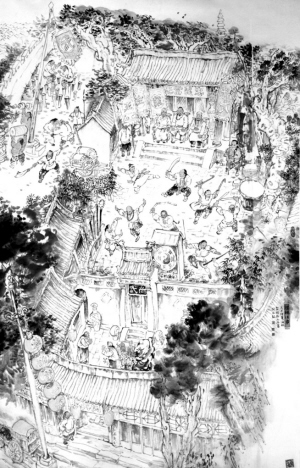 平遥古城用她令人信服的独特魅力,留住了游客,征服了画家。画家们通过在平遥的采风活动,把对平遥的真实感受用笔情墨韵表达出来,对于画家是个全新的尝试和体验。画家在平遥的每一刻都是充满深情地去体验、去感受,我们漫步在古城的大街小巷,陶醉其间、流连忘返。从不同的角度、不同的高度,从整体到局部对平遥有了一个全新的认识。一座门楼、一所宅院、一架车马、一个商号都会激发画家对平遥所蕴含的文化内涵的思考。在时光隧道的延伸中逐渐认识平遥,这个认识是有厚度的。平遥积淀了千年的风雨沧桑,又经历了晋商百年的纵横驰骋,一直到如今的变迁与发展,厚厚的速写本就是画家心灵的印迹。