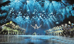 龙战于野,其血玄黄!模拟的战争,真实的激情,当白色天光穿过整个舞台上空的巨大伪装网,斑驳陆离的逆光铺天盖地投向硝烟弥漫的战场,激越的合唱持续撞击胸臆,排山倒海的舞蹈令人血脉贲张。