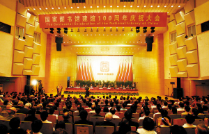 刚才,几位同志的发言,回顾了国家图书馆100年来走过的不平凡历程,阐释了图书馆事业对人类文明进步的巨大作用,表达了对图书馆事业的热爱,对中国图书馆事业在新世纪取得更大成就的祝愿,听了很受感动、很受启发。对国际图联主席艾伦·泰塞女士发表的热情洋溢的致辞表示感谢。100年来,国家图书馆秉承“传承文明、服务社会”的宗旨,与时代同进步,与民族共命运,为传承和弘扬中华民族优秀传统文化、传播现代文明成果,满足人民群众精神文化需求、提高公民科学文化素质,促进知识创新、推动社会进步,发挥了重要作用,作出了不可磨灭的贡献。一代代国图人恪尽职守、甘为人梯、勤奋钻研、努力创新,为繁荣发展中国图书馆事业付出了艰辛的努力,创造了辉煌的业绩。国家图书馆的发展壮大,与一个世纪以来中国革命、建设和改革开放的伟大历程紧密相连,见证了中华民族的复兴之路,见证了中国社会的文明进步,反映了新中国公共文化事业的形成与发展,充分体现出了科学文化知识在推动经济社会发展中的重要作用。国家图书馆取得的成就,是党和政府对我国文化建设正确领导的生动写照。党中央、国务院历来高度重视图书馆事业的发展,新中国成立后,特别是改革开放以来,我国图书馆事业取得了令人瞩目的可喜进步,基本形成了以国家图书馆为龙头,省、市、县三级图书馆和村镇、社区图书阅览室共同组成的图书馆建设体系,呈现出蓬勃发展的良好态势。