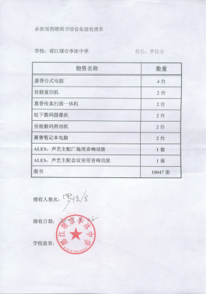 九久公司董事长黄育海称,除3万册崭新的图书外,余秋雨还向3所图书馆捐赠了手提电脑、打印机、传真机、照相机、音响等配套设施,总花费超过50万元。