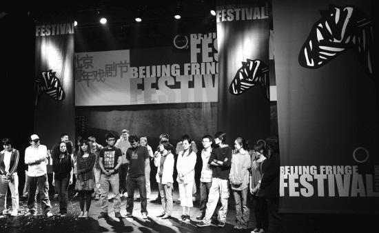 9月7日,第二届北京青年戏剧节在北京蜂巢剧场开幕。从9月7日至27日,第二届北京青年戏剧节将在北京蜂巢剧场、东方先锋剧场、北京人艺实验剧场等10个剧场演出22部共84场话剧作品,并有8个剧本朗读和为期3天4场5个主题的戏剧论坛。图为参加戏剧节的部分导演和编剧在介绍自己的作品。 新华社记者 罗晓光 摄
