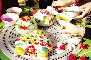 二月二,龙抬头,炒豆豆,陇东人炒黄豆,也要炒那面豆豆。炒好了面豆豆,要在树林子里先给鸟儿撒上些,让他们也能吃上。清明时节,要捏“小燕子”。七月七,要做面塑巧娘娘,不过总是巧娘巧男一对对,黑豆做的眼睛黑幽幽,大红染得嘴唇红润润,还要穿上花衫衫,将面塑和西瓜、葡萄一起摆在院子里,让牛郎织女看见,再加上“鹊桥相会”的刺绣、“心心相印”的鞋垫,在银河下相映生辉。在甘肃省正宁县,这古老而浪漫的风俗还保留着。