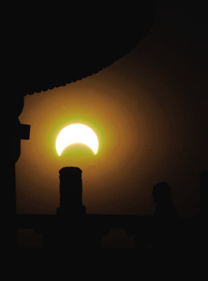 图二:在北京天坛公园拍摄的日偏食景象。