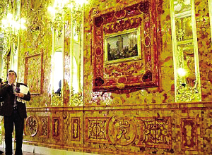 1716年,俄国彼得大帝访问普鲁士,参观慕名已久的琥珀宫时,他赞不绝口。为了与俄国结盟抵御外敌入侵,普鲁士当时的国王、弗里德里希一世的儿子威廉一世将琥珀宫拱手相赠。1717年,琥珀宫被运到圣彼得堡。俄国十月革命后,珍藏在凯瑟琳宫内的琥珀宫成了前苏联最著名的旅游景点之一。