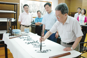 “暗香浮动·指墨传情——王之海书画展”展出了著名花鸟画家王之海历年指画精品力作50余幅,这种以手指代替毛笔蘸墨作画的方法别有一种趣味和技巧,引起了东莞艺术爱好者的广泛兴趣。为了满足观众们想亲眼目睹指画创作的好奇心理,莞城美术馆特邀请画家王之海在开幕当天进行现场指画表演,赢得了在场观众的啧啧赞叹。本次展出的这些清新脱俗、灵动自然的指画作品,为观众们带来了全新的视觉感受和审美愉悦。