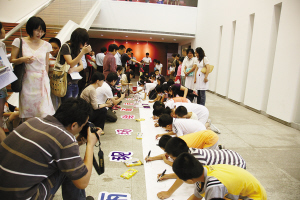 莞城美术馆坚持“美术教育要从娃娃抓起”的思路,积极探索未成年人美术教育途径,在2009年“六一”儿童节策划了“东莞有你绘美丽——东莞市小学生绘画大赛”。莞城美术馆随后展出了大赛获奖的80余幅精品,在开幕现场所举办的“巨画共绘”活动“抓住”了在场所有观众的眼光,30名参赛的小选手在一张20米的长卷上进行主题创作,引导孩子们感受美、发现美、创造美。