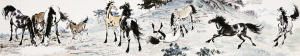 首展展出的莞城美术馆收藏的近200幅近现代中国书画名家的精品力作,如徐悲鸿的《春山十骏图》,张大千的《仕女图》、《巨然晴峰图》,李可染的《倦牧图》等均成为焦点。展览作品题材丰富、种类多样,既有北方雄壮的奇山峻岭,又有南方迷濛的水乡秀色;既有山水、人物、花卉、果蔬,又有翎毛、走兽、虫鱼、博古、书法等,较好地反映了中国近现代绘画的历史发展轨迹。