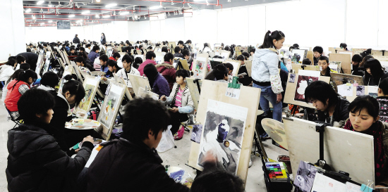 1月24日,贵州省美术类专业统考正式开始,全省报名参加美术类专业统一考试的考生超过1万人,比2009年增加近400人。图为考生在贵州师范大学考点内考试。新华社记者 刘 续 摄