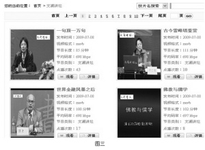 “浙江数字文化网”(http://www.zjwhgx.cn/)是全国文化信息资源共享工程浙江省分中心资源建设和展示的平台。浙江省分中心近几年结合本地资源特色,开发建设了“浙江记忆”资源库(包括浙江藏书史、新编地方志、家谱数据库、越剧资料库、风景浙江、浙江名山名寺旅游资源库)、中国历代名人图像数据库、外国名人图像等数据库,还将“文澜讲坛”120余场讲座进行数字化加工与整合,提供给广大读者和网民使用。