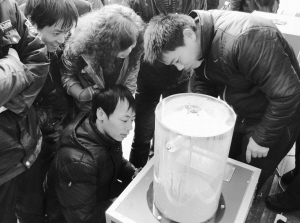 “拉不断的绳子”、“无源之水”、“节能灯PK普通灯”……台州市科学技术协会在现场展出了20多种科技展品,使许多对产品好奇的农民工跃跃欲试。为活跃农民工的文化生活,当日,台州市文化广电新闻出版局还献上了一台精彩的文艺演出,优雅动听的歌声激发了观看演出的观众的热情,台上台下齐欢唱,演员观众齐欢动,演出现场气氛热烈。(江文辉)