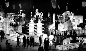 2月27日,陕西省府谷县群众在黄河岸边的河滨公园欣赏花灯,喜迎元宵佳节。