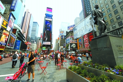 5月2日上午,纽约警方解除对时报广场及周边区域的封锁,广场重新对游客开放。5月1日晚间,美国纽约警方因在时报广场发现一辆汽车后座上装有爆炸物而将时报广场封锁。至5月2日凌晨,纽约市警方从可疑车辆上安全拆除了爆炸物与定时装置,避免了一场可能造成人员伤亡的惨剧。图为游客在纽约时报广场参观游览。