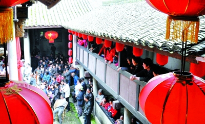 作为女子越剧科班的发祥地,浙江省嵊州市甘霖镇施家岙村从2009年开始在村里古戏台定期举行全国越剧票友擂台赛,吸引各地越剧票友前来登台争擂主的同时,还引来众多的越剧寻根游客。图为近日,观众在该村绳武堂古戏台观戏。(新华社发)