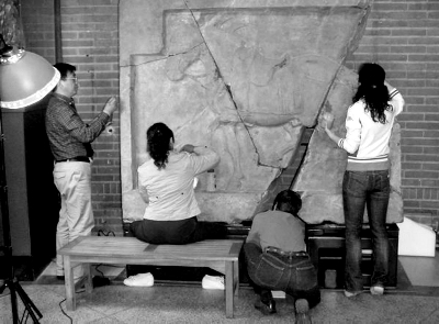 中美专家在对拳毛騧进行缝隙修补工作。王保国 摄