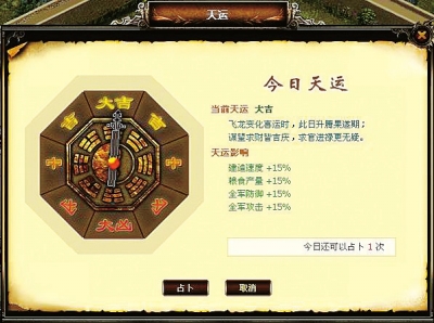首先,《天策》首创城池DIY系统,玩家可以根据自己的构思创意,自由发挥、全面装扮只属于自己的个性城池。另外,《天策》首度引入历史名将系统,刘、关、张、吕布等历史人物悉数登场,成为玩家在三国战争中不可多得的左膀右臂!如果玩家觉得自己势单力薄,不愿只做被打劫的羊,可以选择创建或加入有实力的联盟,联盟会战等团队作战将会有更浓厚的战争氛围和更多的游戏乐趣。另外,《天策》独创的藏兵系统可以方便快捷地保护自己的兵力与将领不受损失,从一定意义上讲,藏兵系统的推出与绿色网游的概念不谋而合。如果说战场上讲天时地利人和,那么,占尽了地利人和的《天策》玩家自己少不了天时一项,由此,SLG网页游戏的另一项创新之举——天运系统应运而生。依天运而动,顺势而发,融合了天运五行说的天运系统带来SLG网页游戏的另一项变革。