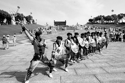 7月23日,南昌傩文化主题公园——中国傩园在江西省南昌市开园迎客。该公园占地面积10万平方米,以江西傩文化为主,集中展示了中国及世界各国各具特色的傩面具及傩文化。图为民间艺人在南昌中国傩园内表演盾舞。(新华社发)