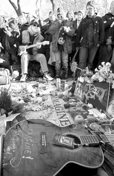 12月8日,上世纪50年代最知名的摇滚乐队“甲壳虫”(也译作“披头士”)乐队的乐迷汇聚在美国纽约曼哈顿中央公园的“草莓地”,纪念乐队已故主唱约翰·列侬遇刺30周年。“草莓地”是一个黑白马赛克组成的圆形地面,中间镶嵌着“想象”的字样,是纽约纪念列侬的著名场所,“草莓地”的位置也正对着列侬当年在纽约曼哈顿寓所的窗户。1980年12月8日,列侬在寓所门口遭枪杀,年仅40岁。