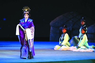 作为来自内蒙古大草原的新编剧目,蒙古风情无疑是该剧的最大亮点。剧中,活泼明快的流水散板和着字少腔长的蒙古长调,行云流水的水袖辉映着踏地为节的蒙古舞蹈,穿透力十足的京胡和低回婉转的马头琴同奏《出塞曲》,使观众在领略梨园雅韵的同时,也感受到了浓郁的草原风情。