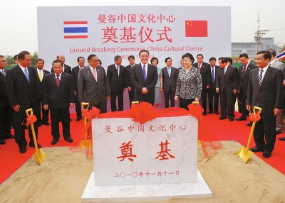 2010年是驻外中国文化中心筹建工作取得重大进展的一年。乌兰巴托中国文化中心于6月2日揭牌,年底前正式启用;马德里中国文化中心已完成购房程序,莫斯科中国文化中心已签署购房协议,这两所文化中心经装修后将于明年启用。新加坡中国文化中心已经奠基,预计于2011年启动工程的各项前期准备工作。曼谷中国文化中心已经破土动工,该中心占地面积为7344平方米,建筑面积总规模6809平方米,预计于2012年5月交付使用。