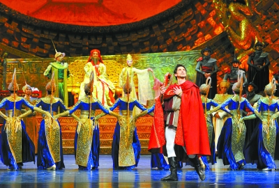 12月22日,在国家大剧院3周年院庆之际,国家大剧院首部原创舞剧《马可·波罗》隆重登场。该剧讲述了一位现代意大利青年,化身700年前的旅行家马可·波罗,梦回元代中国的故事,为观众带来了一场高品质的艺术盛宴。《马可·波罗》以中国东方演艺集团有限公司中国歌舞团的全体演员为主要班底,邀请意大利斯卡拉歌剧院芭蕾舞团首席舞蹈演员米克·泽尼加盟,出演“马可·波罗”一角。据悉,该剧将持续上演至本月28日。图为演员在舞剧《马可·波罗》的演出中。新华社记者 黄敬文 摄