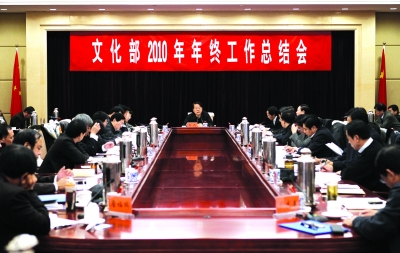 本报讯 (记者黄小驹)文化部2010年年终工作总结会12月23日至24日在全国宣传干部学院召开。文化部党组书记、部长蔡武主持会议并作2010年工作总结报告。他强调,要坚持走中国特色社会主义文化发展道路,坚持改革开放,坚持科学发展,坚持开拓创新,团结一心,振奋精神,扎实工作,开拓进取,不为任何风险所惧,不被任何干扰所惑,为推动文化大发展大繁荣,促进经济社会全面协调可持续发展作出新的更大贡献。
