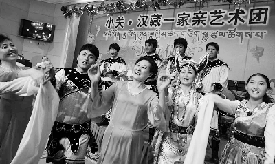 北京市朝阳区小关社区内有西藏中学、藏医院等多家藏族同胞集中的单位。为加强各民族间的团结、友爱,小关社区积极组织有文艺天赋的少数民族群众,成立了“汉藏一家亲艺术团”,并于近日举办了文艺演出。图为“汉藏一家亲艺术团”的演出现场。本报记者 喻非卿 摄