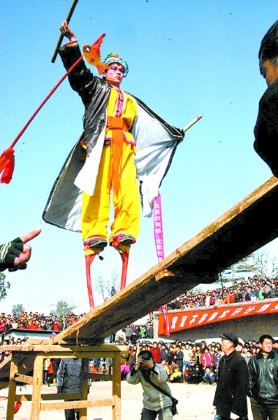 今年适逢浚县第三届民俗文化节举办,古庙会更是热闹非凡,从大年初一开始至正月底,以各乡镇为单位的表演团体,在大坯山和浮丘山以及两者之间的坯浮路上走高跷、耍狮子、舞龙、跑旱船、放火铳、耍杂技、唱戏曲,锣鼓震天、丰富多彩的民间社火表演,融民间艺术、宗教信仰、物资交流、文化娱乐为一体的民间娱乐活动,让游客大饱眼福。