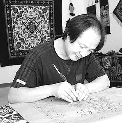 见到吴元新时,他正在忙着接待对蓝印花布有兴趣的人。2011年春节前,由文化部和北京市政府共同主办的百名非物质文化遗产项目代表性传承人迎春展示活动在北京举行,吴元新也在应邀之列。