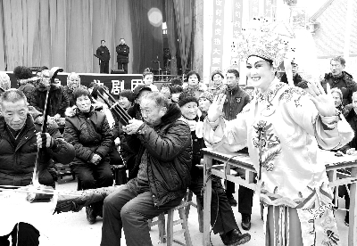 近日,河南省济源市2011年农村戏曲大赛在当地承留镇南勋村开幕,由农民自发组织的21家业余剧团将在21天时间里演出豫剧、曲剧等地方戏曲42场,豫剧等一些地方剧种在这里得到了广泛传承,并有着深厚的群众基础。(新华社发)