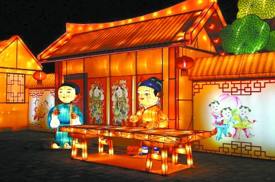 江浙灯彩也是誉满天下。南京夫子庙灯会的盛名自明沿传至今,素有“秦淮灯火甲天下”一说,其兔子灯、蛤蟆灯、狮子灯、三星灯,乡土气息浓郁。夫子庙今年的灯会以中华传统文化为主题,40余组花灯将传统文化表现得淋漓尽致。