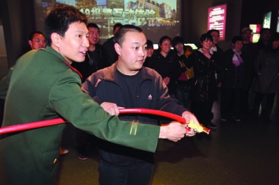 受日本地震影响,北京市民学习防灾减灾知识的意愿越发强烈。据新开放的中国消防博物馆工作人员介绍,从上周起,中国消防博物馆参观量明显上升。参观者体验后普遍反映,博物馆在普及防灾减灾知识上作用非常大。这是3月16日,参观者在消防人员带领下学习发生灾难时如何自救。本报记者 喻非卿 摄
