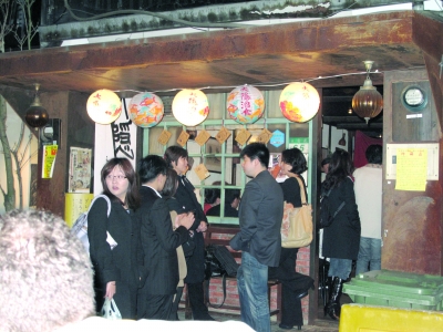 古话说:小隐隐于野,大隐隐于市。大隐酒食可谓闹中取静,颇具情趣。它是一家日本风格的小餐馆,以古拙怀旧的情调为特色,化妆间用的竟是传统的木头门栓。尽管只能容纳二三十人,坐着实在逼仄,甚至在店中穿行都要互相避让,但因为菜有特色而吸引了不少慕名而来的人。屋里没座位,食客宁愿在外面排队等座也不去旁边正在招徕客人的餐馆。正应了那句俗话:酒香不怕巷子深。它有一种特色菜——老萝卜炖汤,老板称是20年的萝卜做成的。开始我以为听错了,心想哪有这么老的萝卜,特意去请教老板,他说的确是20年的老萝卜,将萝卜晾晒后用陶瓮储藏起来备用,他还指着储藏萝卜的陶瓮给我看。我们始信这一小店确实不是浪得虚名,确有其经营的绝招,国人脍不厌精,食不厌细于此略见一斑。因为此汤难得,大家不免又多喝了几口。