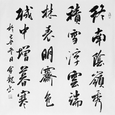天道酬勤。近年来,金龙又得老一辈艺术家之教诲,而今在中央民族大学崔如琢工作室进修,得前辈耳提面命,书画之艺精进,其作品渐成自家风格,在全国各级赛事中多次入选、获奖。书画家李燕先生观其作品后,欣然命笔题词:“书法艺术乃视觉之音乐”,这也说明金龙的书画作品有其特殊的魅力。