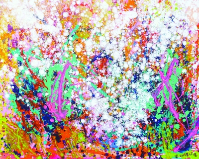 “花语心影”——青年女画家幻循画展是今年“三八”节期间中国美术馆唯一的女性画家展览。进入展厅,仿佛置身一个花的海洋——这是幻循运用多种材料以及泼洒、渍染、写绘乃至滴洒等技法创造出的一个色彩瑰丽、想象自由、不拘成格的世界,其中所传递的,是一种色彩的意象,一种对于自然万物的运动、气息、韵味的品鉴与回味,是对生命的高歌或低吟。这个香雪海般的审美境界,使人们如入花丛,如闻花香,如听花语,如晤花魂。