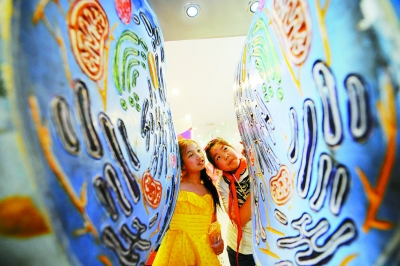 “六一”儿童节将至,河南省郑州市大学路民工子弟小学和郑州市二七区妇联共同组织留守流动儿童走进郑州市科技馆参观,孩子们通过动手实验体验科学现象,学习科普知识,享受科技知识带来的快乐。图为孩子们在观看细胞结构模型。