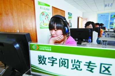 近年来,山东省烟台市把“让文化发展成果普惠于民”作为大力发展文化产业的落脚点,全市12个文化馆、149个文化站全部免费对市民开放,构建起覆盖城乡、资源共享的公共文化服务体系。图为6月2日,在烟台市图书馆,一位市民在公共电子阅览室登录网络图书馆查找资料。新华社记者 郭绪雷 摄