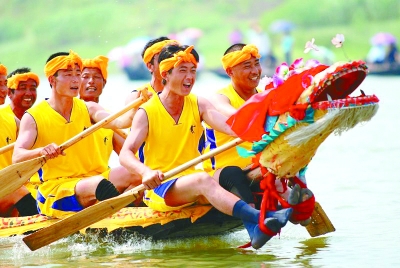 端午的原旨和性质在各地是一致的,几乎没有大的区别,而构成端午节日的礼俗则种类、名目繁多,且因地而异。以生活形态类而论,诸如蓄兰沐浴、龙舟竞渡、采百草与斗百草、捕蛤蟆、熙游、竞技等;以驱毒逐疫类而论,诸如戴百索和香囊、长命缕,悬艾人、五雷符、五毒符等;以时食类而论,诸如角黍(粽子)、羹汤、端午酒、端午宴等不一而足。总的看来,代表性的礼俗主要是两项:龙舟竞渡和吃角黍(粽子)。