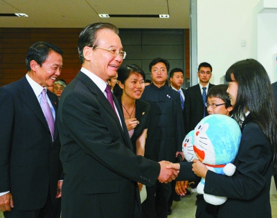 新华社北京6月8日电 (记者廖雷)国务院总理温家宝8日在国家博物馆会见日本首相特使、前首相麻生太郎以及中日两国影视、动漫界代表,并出席中日合办影视周·动漫节启动仪式。