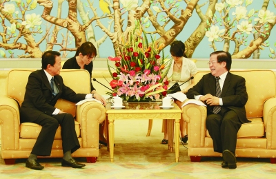 本报讯 (记者翟群)6月7日,文化部部长蔡武在北京会见了日本首相特使、前首相麻生太郎一行。
