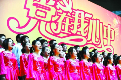 6月12日,安徽大学举行“纪念中国共产党成立90周年万人红歌会”大型红歌比赛,该校19个院系近万名师生高唱红歌,迎接“七一”的到来,向党的生日献礼。图为安徽大学的大学生在进行红歌比赛。新华社记者 李 健 摄
