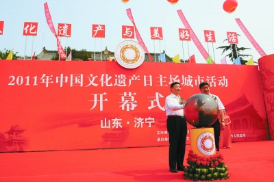 6月11日上午,2011年中国文化遗产日主场城市活动开幕式在济宁市太白广场举行。姜大明、单霁翔共同启动了文化遗产日开幕式按键;童明康向济宁市颁发了主场城市荣誉称号铜牌,并开通了中国长城信息网;张振川做了开幕致辞。